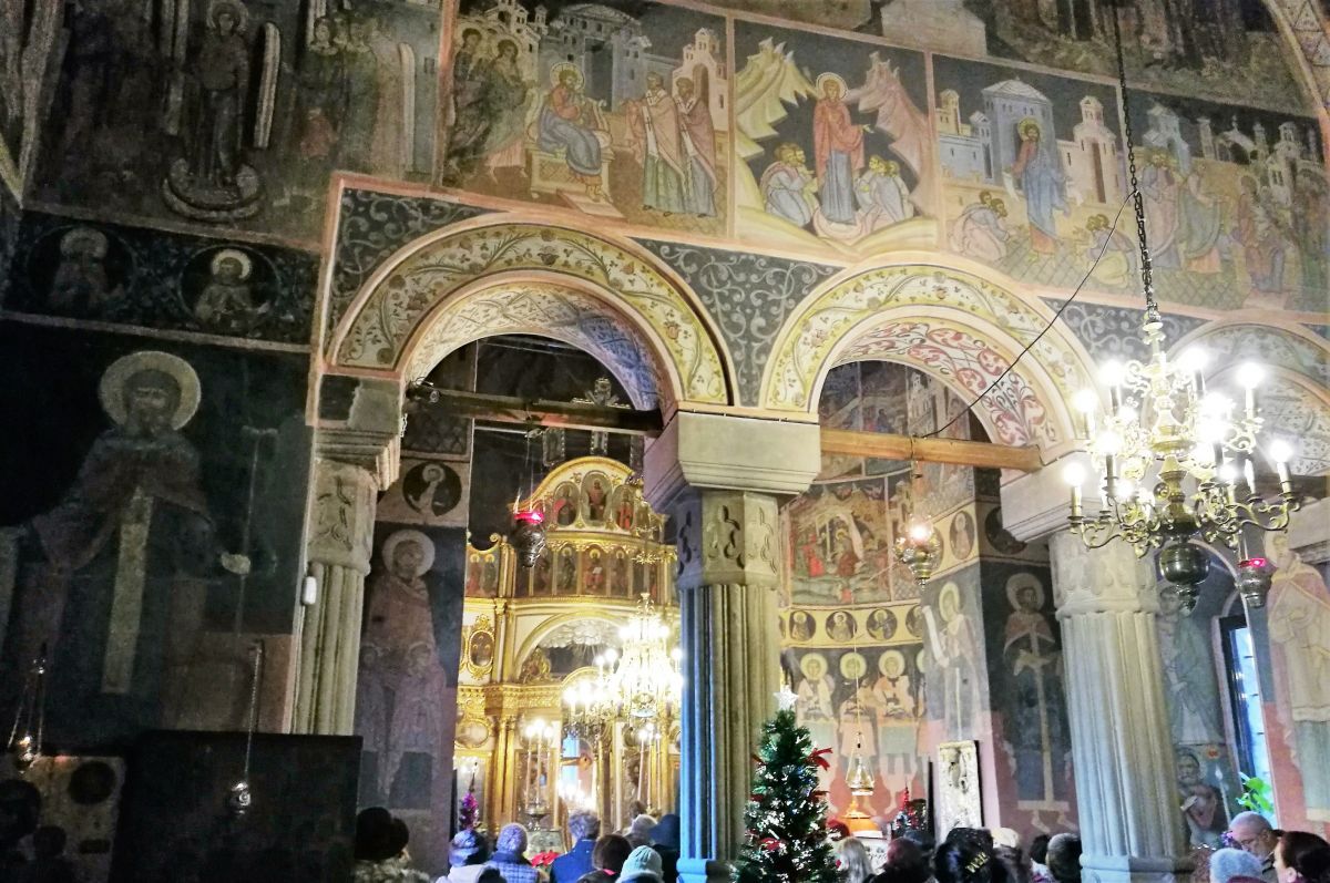 Dimineață, centrul Bucureștilor e aproape pustiu, dar biserica e plină.