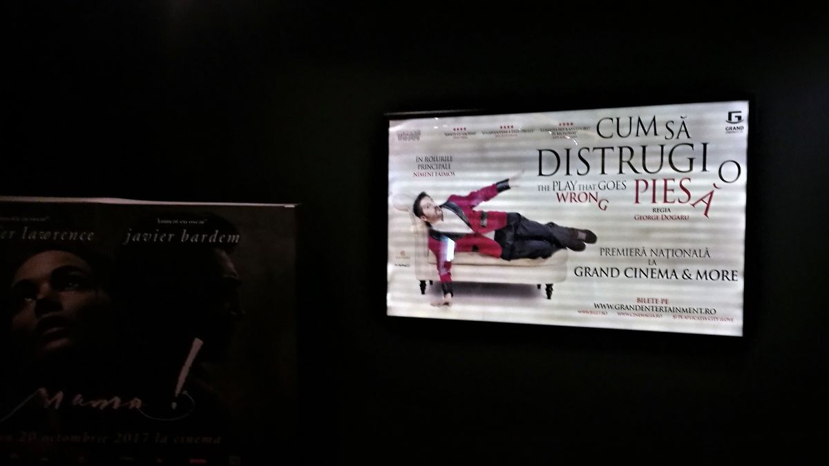 Cum să distrugi o piesă. La Grand Cinema&More din Băneasa Shopping Center se joacă (și) teatru de cea mai bună calitate. Sâmbătă seara, parcarea marelui complex dedicat cumpărăturilor de orice fel e neîncăpătoare. Ca și mall-ul. Seara de weekend rece construiește un oraș în oraș în nordul Bucureștilor. Undeva la etajul întâi, într-una din sălile de cinema, se joacă teatru. Spectacolul Cum să distrugi o piesă a umplut sala.