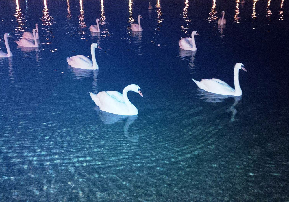 „Leaku noc. Noapte bună”. Liniștea se răsfiră rece peste lebedele din orașul adormit.