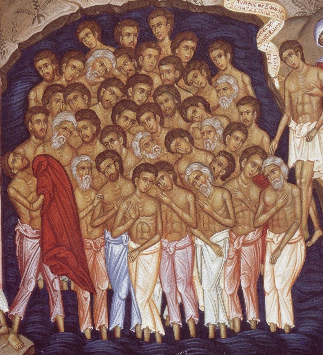 Cei 40 de Sfinți Mucenici au trăit pe vremea împăratului roman Licinius (308-324). Erau soldați în armata romană și erau creștini. Nu erau doar romani, erau și greci, și armeni. Făceau parte din Legiunea Fulminata (a XII-a), care era staționată în Armenia. Licinius a prigonit creștinii, iar cei 40 de soldați au fost puși de guvernatorul Armeniei să se închine la idoli. Ei au refuzat. Atunci au fost închiși și bătuți cu pietre. Pentru că nu s-au lepădat de credința lor, au fost condamnați la moarte prin îngheț în Lacul Sevastiei. Rugându-se, gheața s-a topit, iar apa lacului s-a încălzit. Au fost scoși din lac și au fost uciși, li s-au zdrobit picioarele. Povestea pe Sfinților Mucenici o găsiți pe creștinortodox.ro.